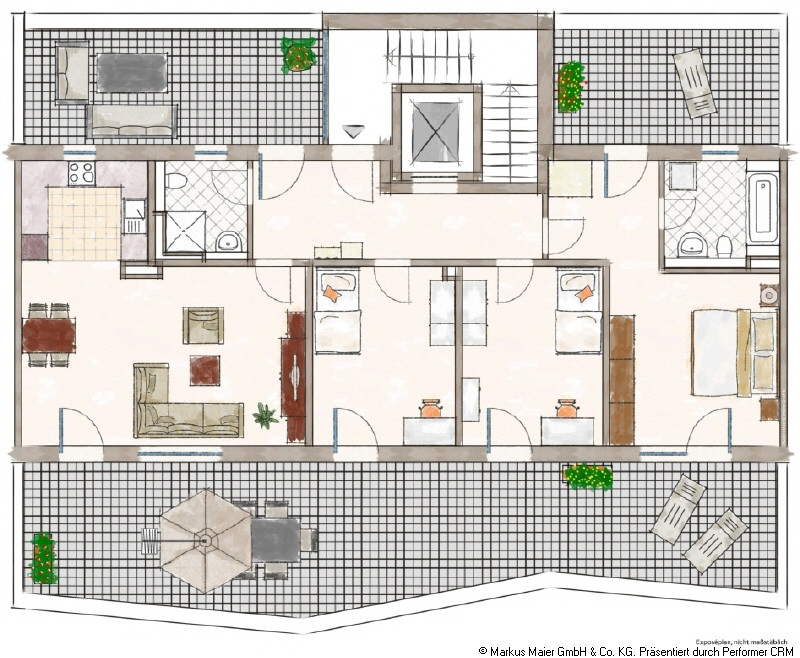 Die drei Dachterrassen umschließen fast die komplette Wohnung, so können Sie zu jeder Tageszeit die Sonne genießen.