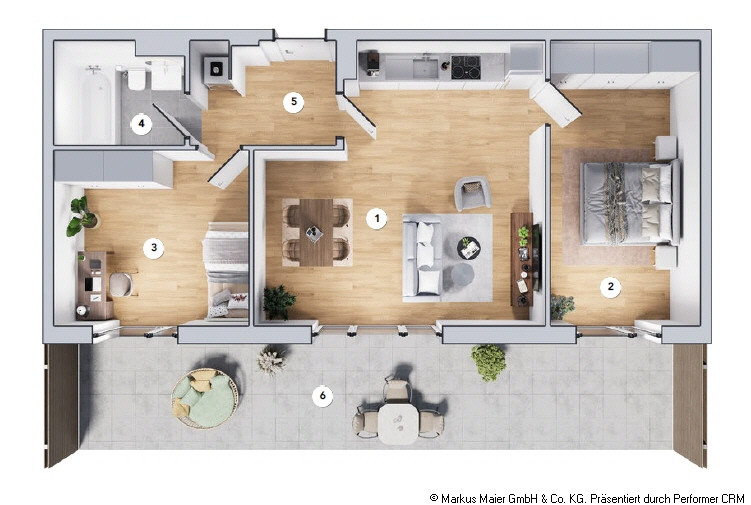 4. Holzparkett- oder Vinylboden nach Wahl in allen Wohn-, Ess- und Schlafräumen. Leicht zu pflegen und schön anzusehen.