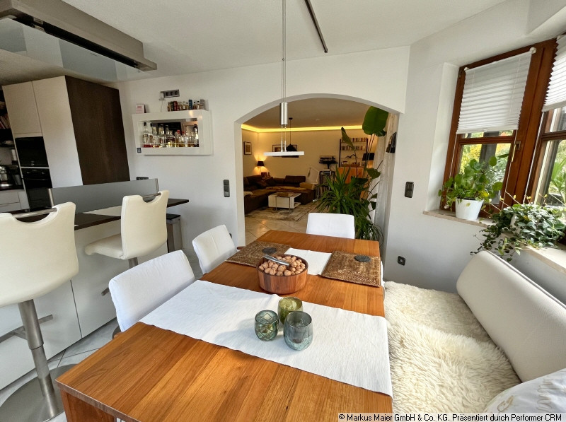 Willkommen in Ihrem neuen Zuhause! Diese gepflegte und lichtdurchflutete Maisonette-Wohnung überzeugt durch eine durchdachte Raumaufteilung, hochwertige Ausstattungsdetails und ein Wohnambiente, das gleichermaßen modern wie gemütlich ist. Sie befindet sich in einem ruhigen Wohnumfeld und bietet auf zwei Ebenen alles, was das Herz begehrt.Bereits beim Betreten der Wohnung spürt man die besondere Atmosphäre: Der offene Wohn- Koch- und Essbereich wirkt durch einen gemütlichen Erker besonders einladend und bietet viel Platz für individuelle Gestaltungsideen. Der angrenzende Balkon lädt dazu ein, den Tag bei einem Kaffee im Freien zu beginnen oder laue Sommerabende entspannt ausklingen zu lassen.