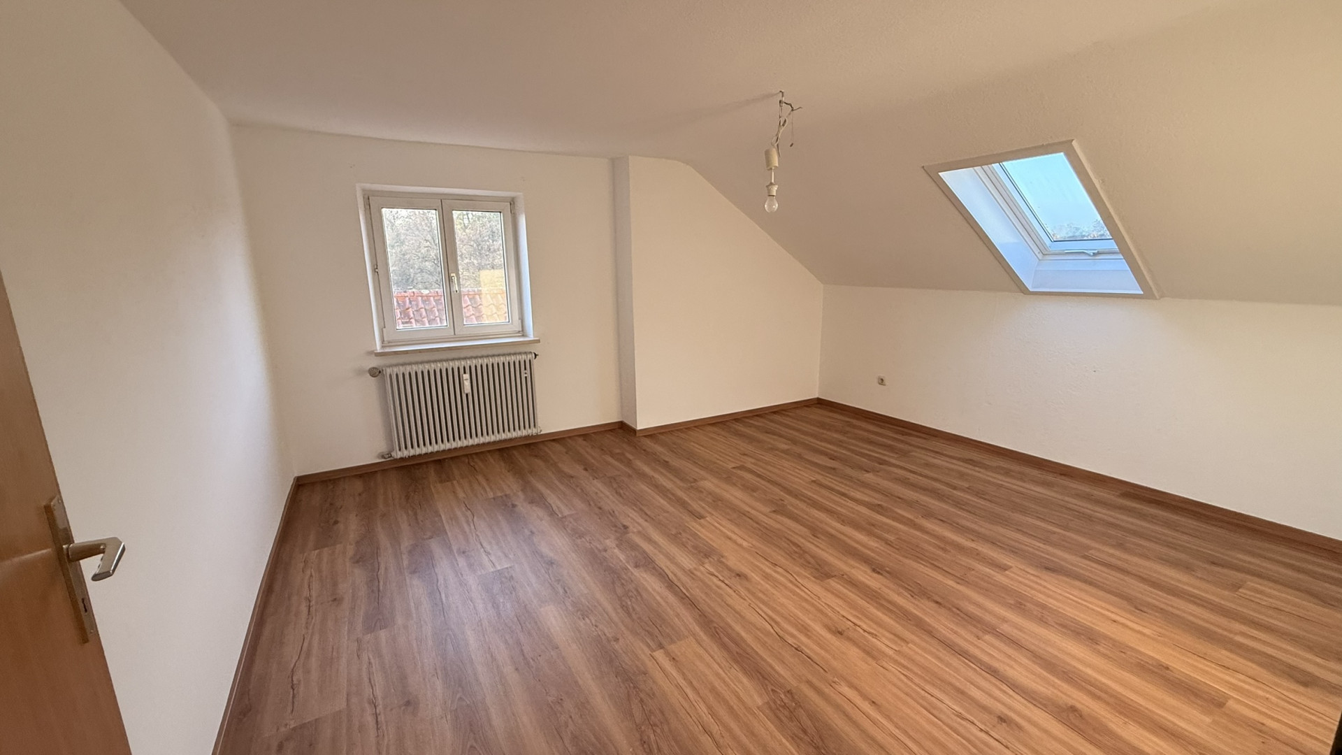 - Einbauküche mit viel Stauraum, Herd und Spülmaschine. Ein Kühlschrank ist nicht enthalten.- Bad mit Wanne und Dachfenster