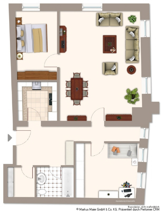 Diese geräumige 3-Zimmer-Wohnung befindet sich im 2. Obergeschoss in einem gut gelegenen Wohngebäude in Wasserburg. Sie besteht aus einem großem Wohnbreich, zwei Schlafzimmern, Diele, Bad, WC und einer abgeschlossenen Küche. Ein seperater Abstellraum ist ebenfalls vorhanden.Die Dachterrasse darf gerne mitbenutzt werden.